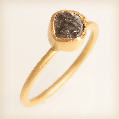 .טבעת יהלום גלם אפור זהב צהוב 18 קרט