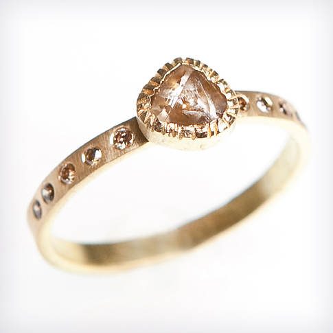 .טבעת אירוסין יהלומי גלם שמפניה זהב צהוב 18 קרט