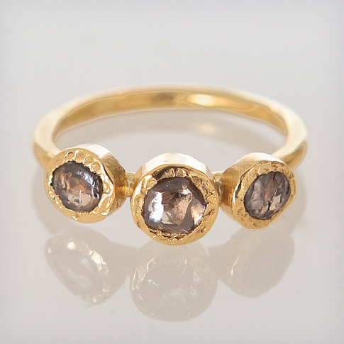 .טבעת 3 יהלומי גלם שמפניה זהב צהוב 18 קרט