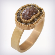 .טבעת אירוסין יהלומי גלם שמפניה זהב צהוב 18 קרט