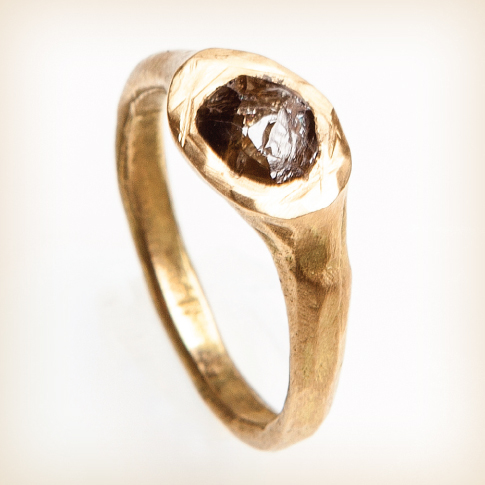 .טבעת אירוסין יהלומי גלם שמפניה זהב צהוב 18 קרט